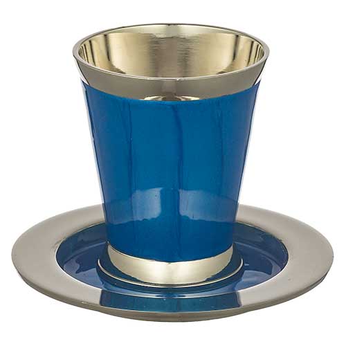גביע קידוש אלומיניום מהודר עם תחתית גוון כחול 9 ס"מ