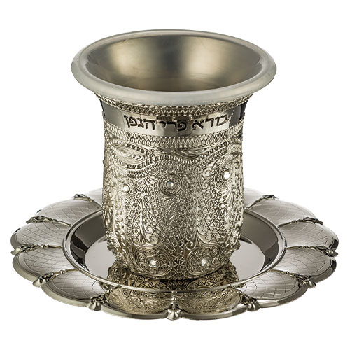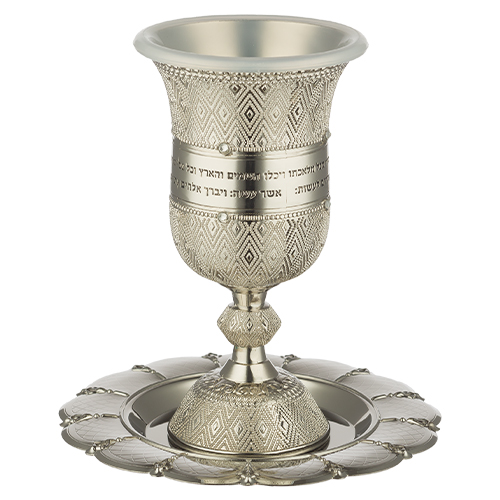גביע קידוש גימור ניקל פיליגרין עם ברכה "ויכלו.." עם תחתית 15 ס"מ