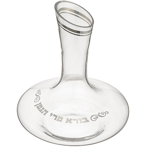 בקבוק זכוכית ליין עם "בורא פרי הגפן" כסף 26 ס"מ