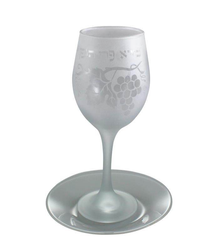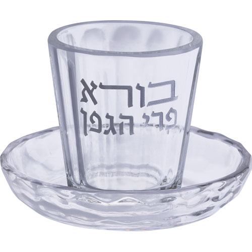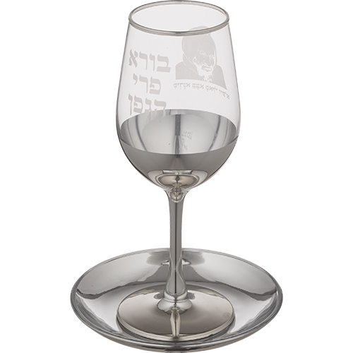גביע קידוש זכוכית שקוף וכסף "בבא סאלי" 21 ס"מ