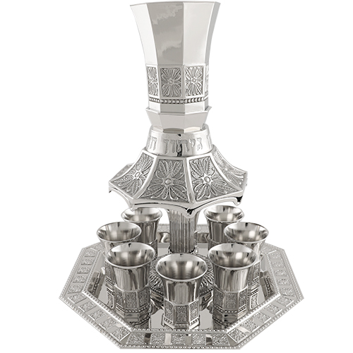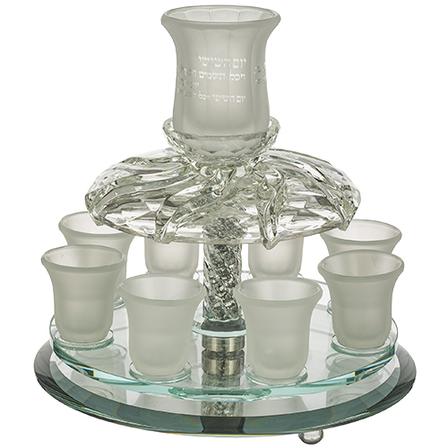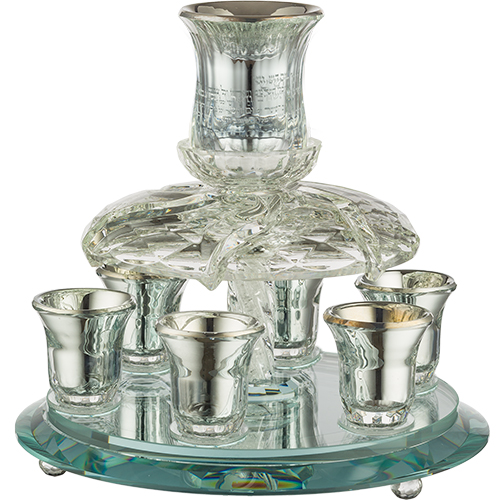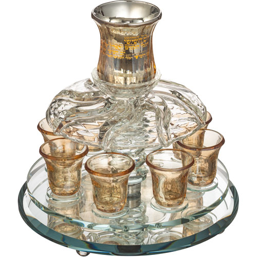 מחלק יין מסתובב קריסטל מהודר עם 6 כוסיות "כסף" 25X33 ס"מ