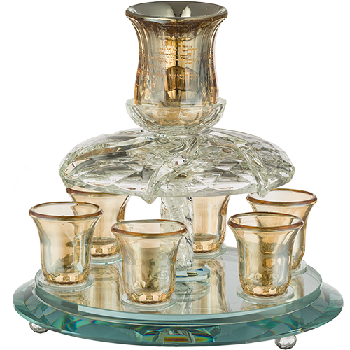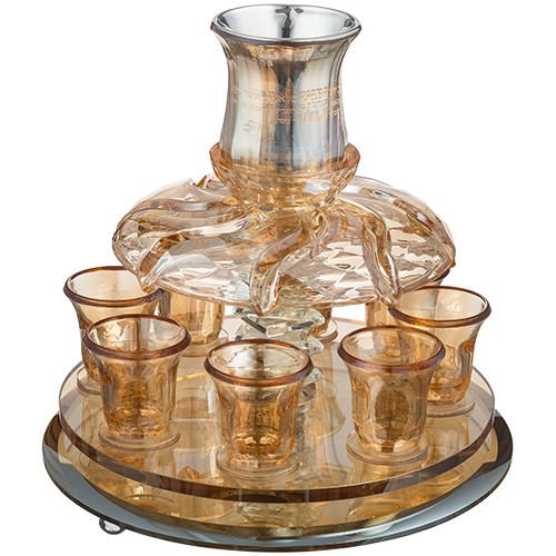 מחלק יין מסתובב קריסטל מהודר עם 6 כוסיות "זהב" 25X33 ס"מ
