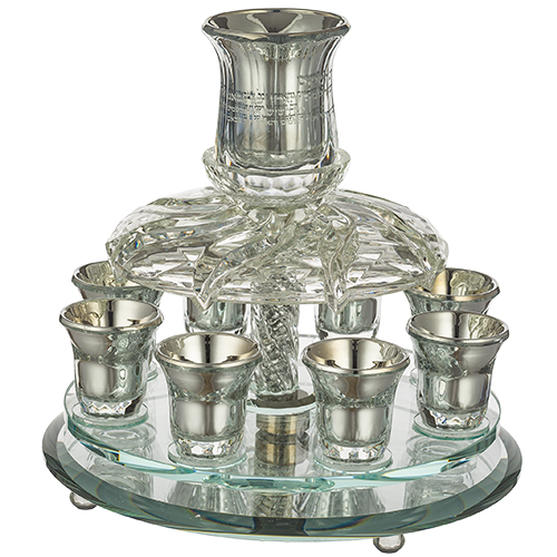 מחלק יין מסתובב קריסטל מהודר עם 8 כוסיות "כסף" 25X33 ס"מ