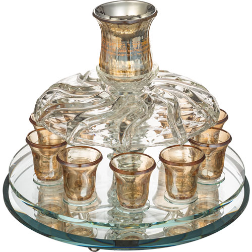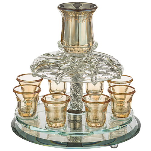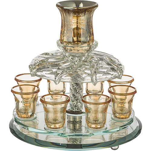 מחלק יין מסתובב קריסטל מהודר עם 8 כוסיות "זהב" 25X33 ס"מ