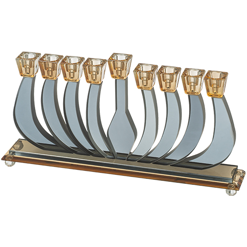 חנוכייה קריסטל מהודרת – זהב עם שחור 37×6 ס"מ