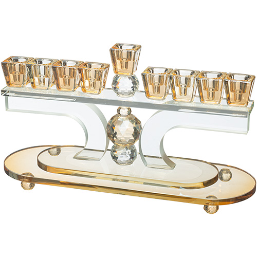 חנוכייה קריסטל מהודרת – זהב 37×6 ס"מ