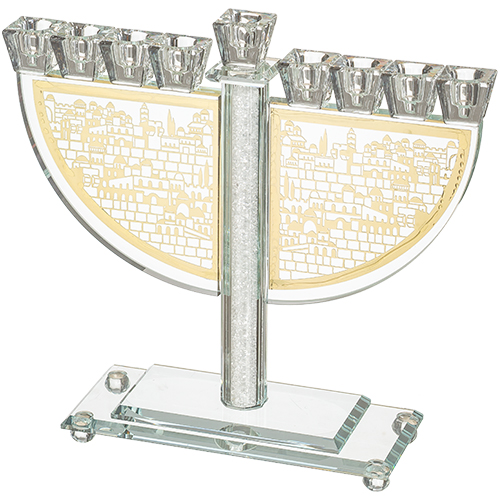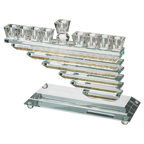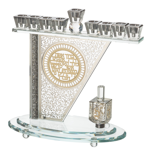 חנוכייה קריסטל מהודרת עם פלקטה 23 ס"מ