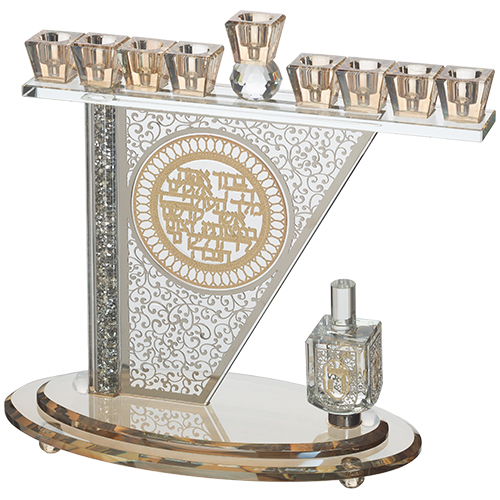 חנוכייה קריסטל מהודרת עם פלקטה 22X34 ס"מ