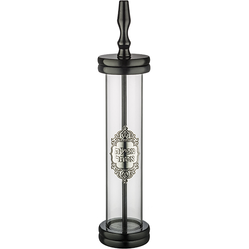 בית מגילה ספרדי קוטר 9 ס"מ עץ + פיו כותל עם פלקטה עבור קלף 15 ס"מ