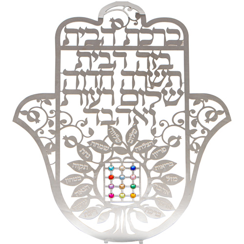 חמסה חיתוך לייזר, ברכת העסק עברית עם אבנים