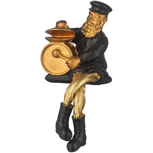 חסיד יושב מפולירייזן שחור עם רגלי בד זהב 25 ס"מ מנגן בתוף