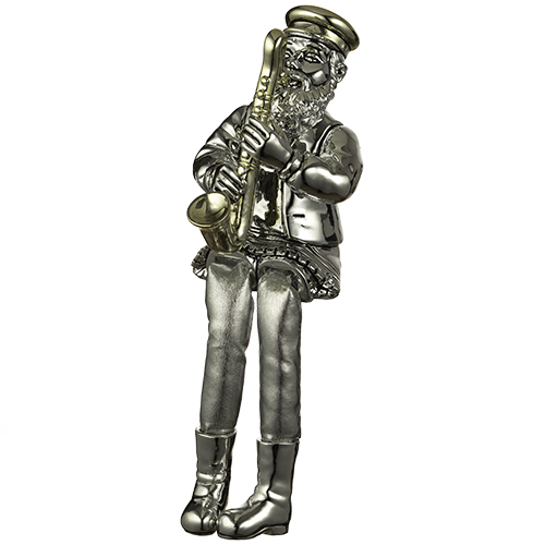 חסיד יושב מפוליריזן שחור עם רגלי בד כסף 25 ס"מ מנגן בקלרינט