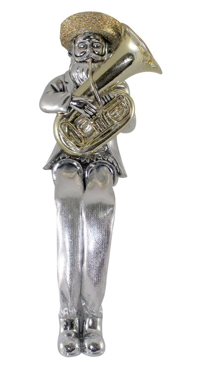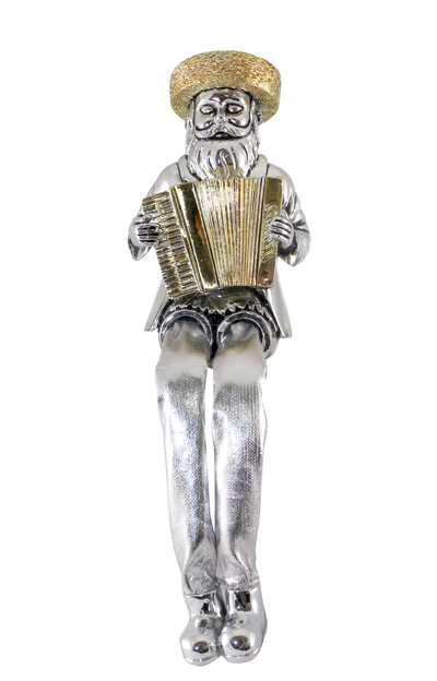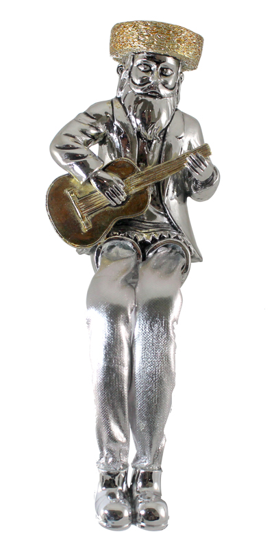 חסיד יושב מפולירייזן מוכסף עם רגלי בד כסף מנגן