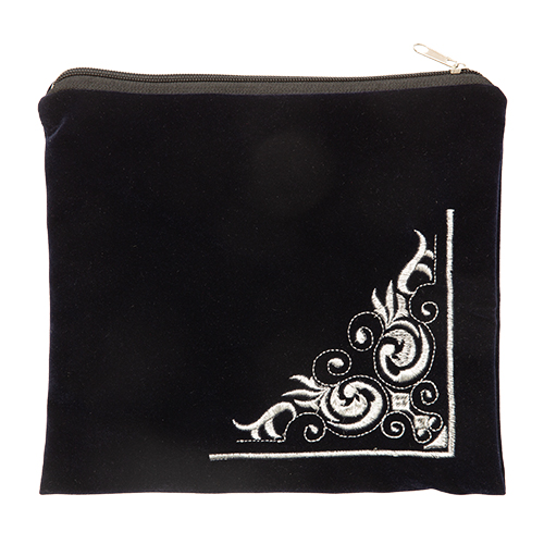 תיק לתפילין קטיפה כחול כהה עם ריקמה, קטן- 2426 ס"מ