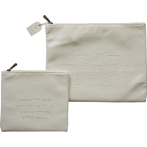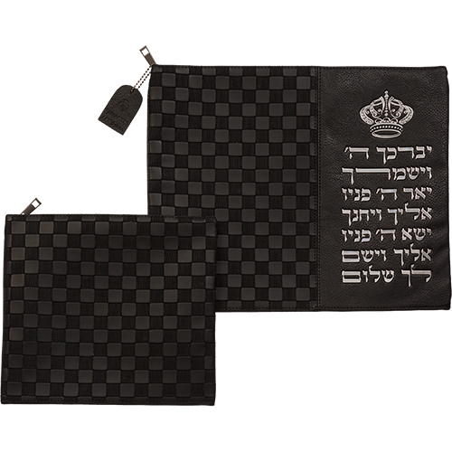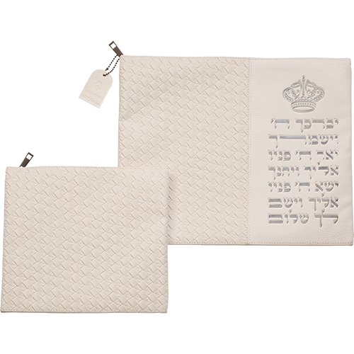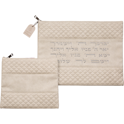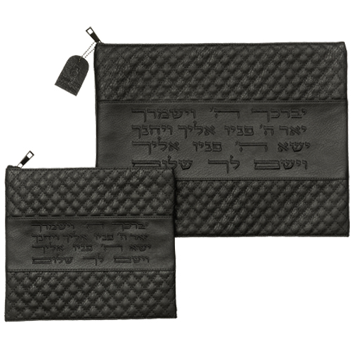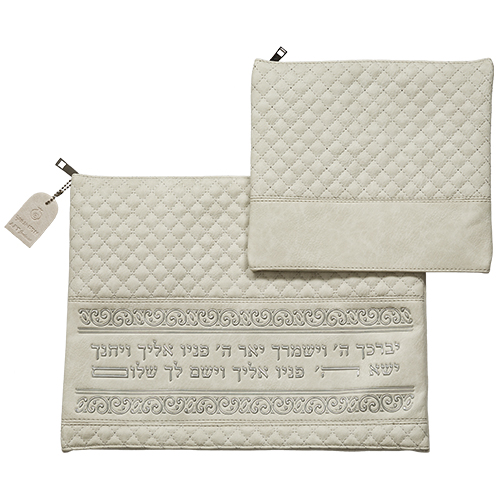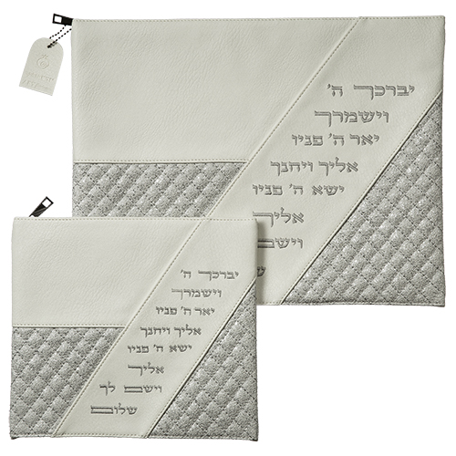 סט טלית תפילין דמוי עור אותיות בולטות "יברכך" כסף 31X38 ס"מ
