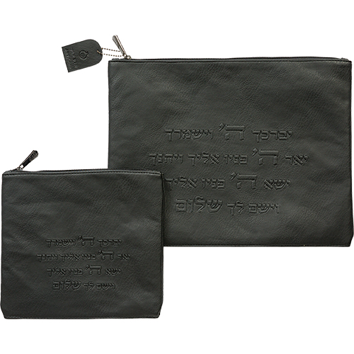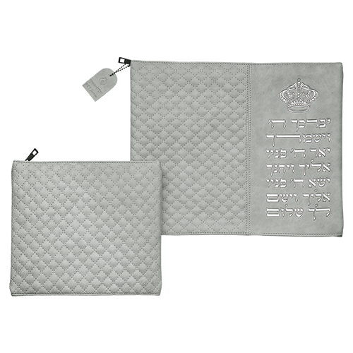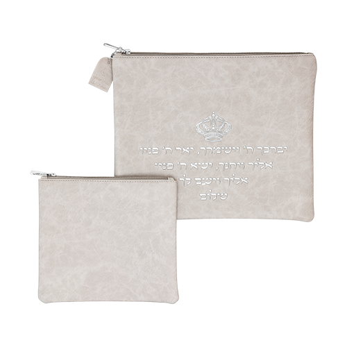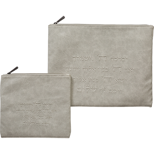 סט טלית תפילין דמוי עור אפור אותיות בולטות "יברכך" כסף 31X38 ס"מ