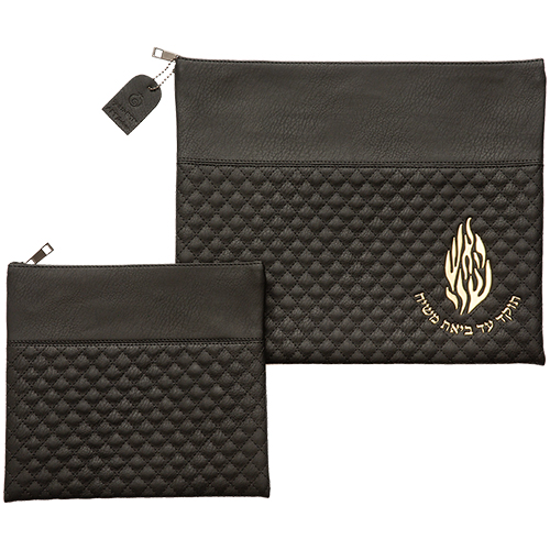 סט טלית תפילין דמוי עור שחור עם הבלטה "האש שלי" 36X29 ס"מ