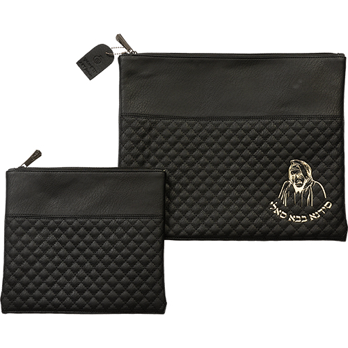 סט טלית תפילין דמוי עור שחור עם הבלטה זהב "בבא סאל