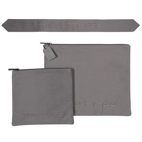סט טלית תפילין מהודר דמוי עור אפור בטון 3629סמ