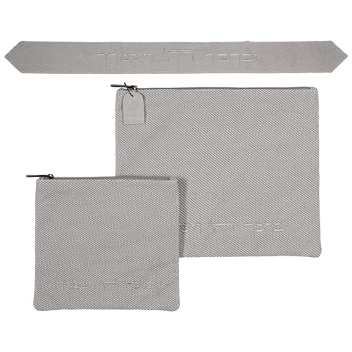 סט טלית תפילין מהודר בד ארוג אפור כהה ואפור בהיר עם רקמה 36X29 ס"מ