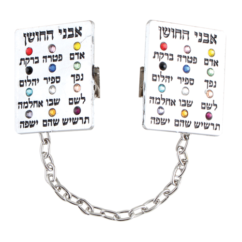 קליפס לטלית ניקל אבני החושן עם שרשרת