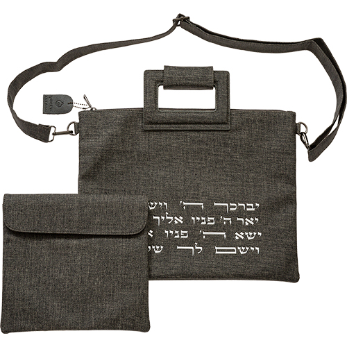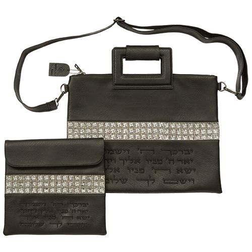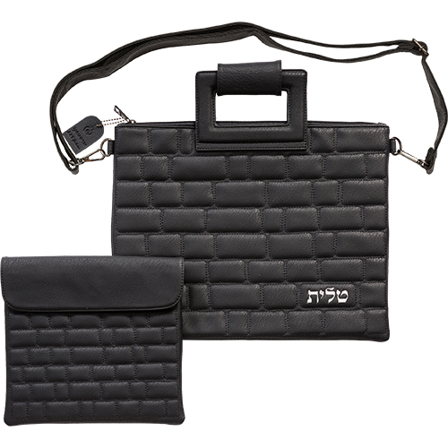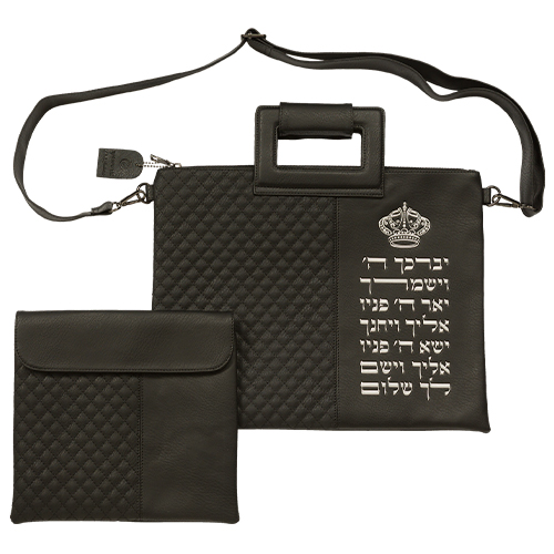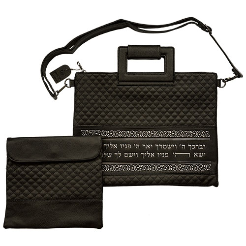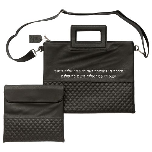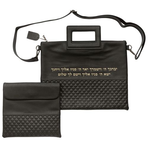 תיק מפואר לטלית דמוי עור שחור אותיות בולטות "ויברכ