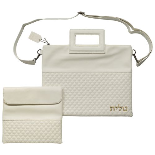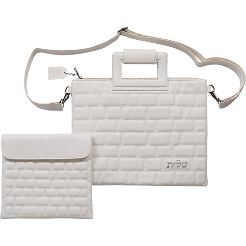 תיק מפואר לטלית דמוי עור לבן אותיות בולטות "טלית"