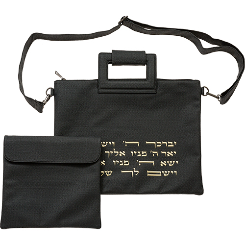 תיק מפואר לטלית דמוי עור שחור אותיות בולטות "יברכך