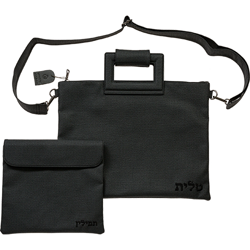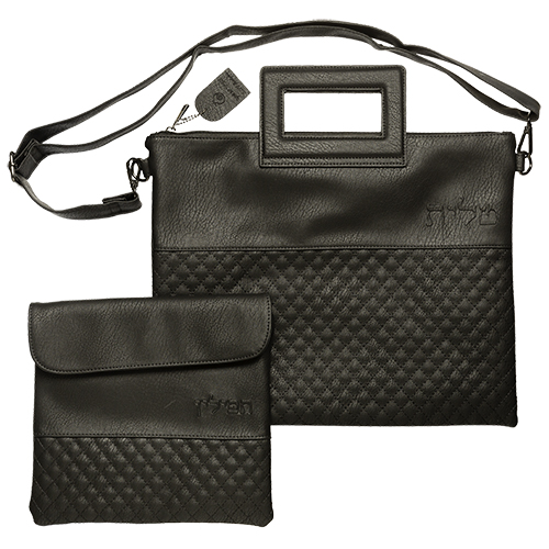 תיק מפואר לטלית תפילין דמוי עור גוון שחור עם ידיות
