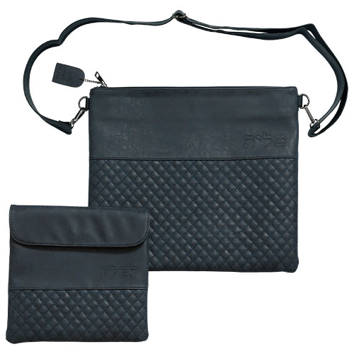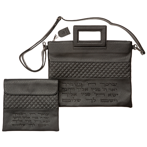 תיק מפואר לטלית תפילין דמוי עור גוון שחור "יברכך"