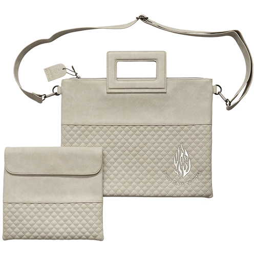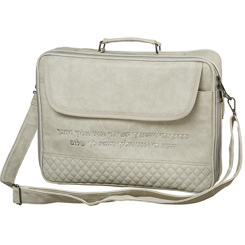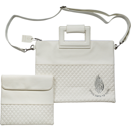 תיק מפואר לטלית תפילין דמוי עור גוון לבן עם הבלטה "האש שלי" וידיות 38*31 ס"מ