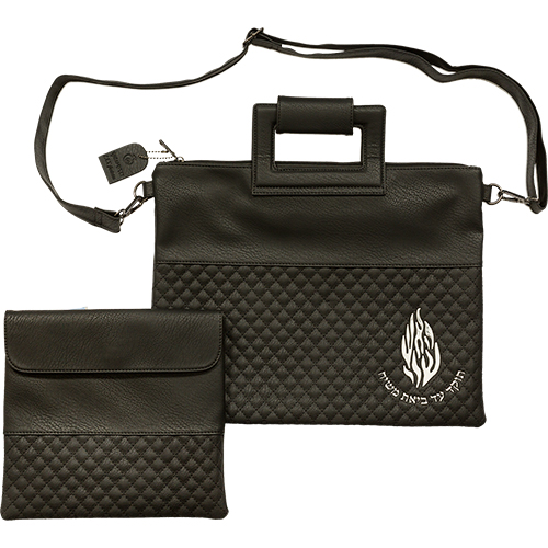 תיק מפואר לטלית תפילין דמוי עור גוון שחור עם הבלטה "האש שלי" וידיות 38X31 ס"מ