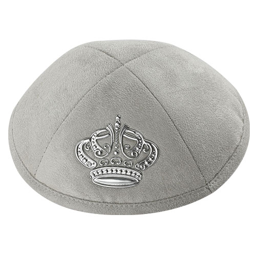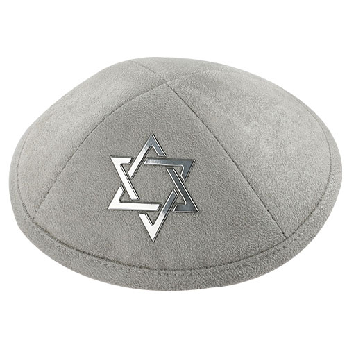 כיפה אולטרא סוויד אפור 19 ס"מ "מגן דויד" כסף ומקום