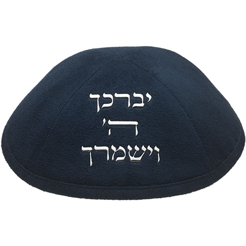 כיפה אולטרא סוויד כחול כהה 19 ס"מ עם "יברכך" ומקום לסיכה
