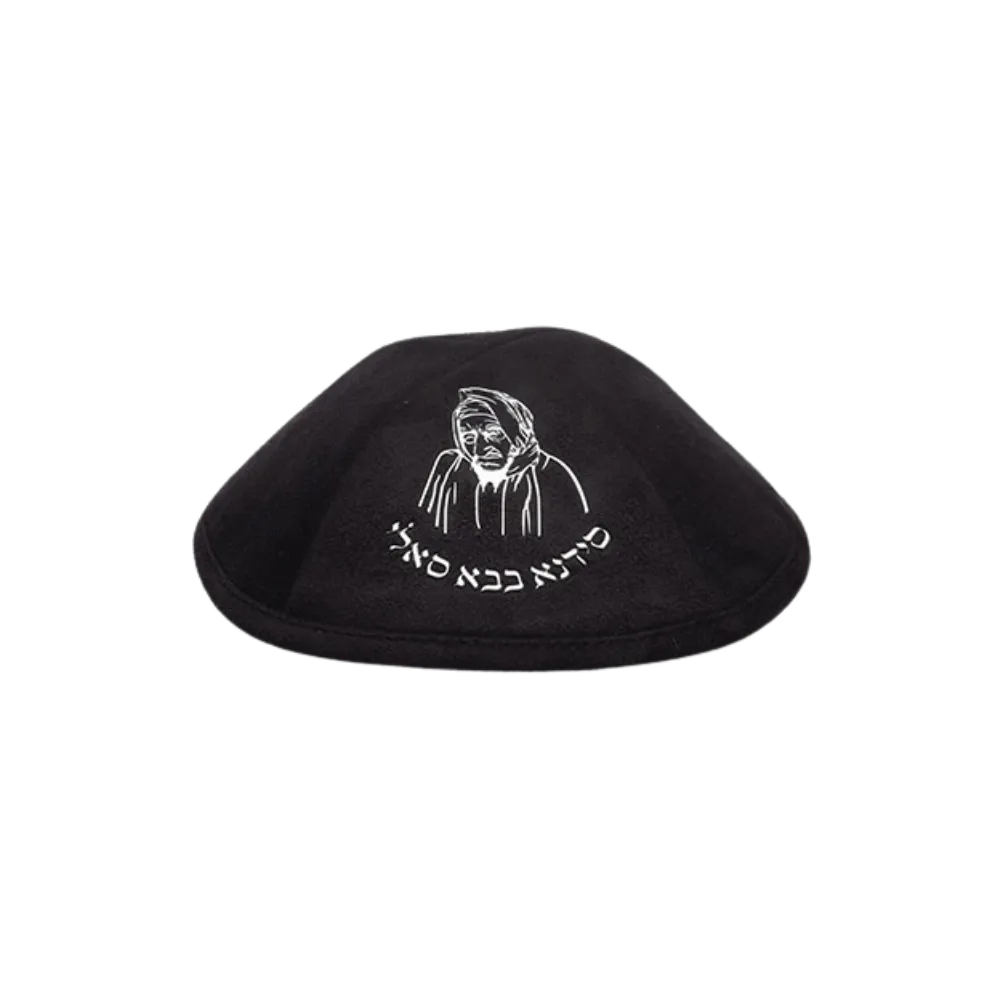 כיפה סרוגה 16 ס"מ לבנה עם ריקמה "נחמן מאומן" כסף