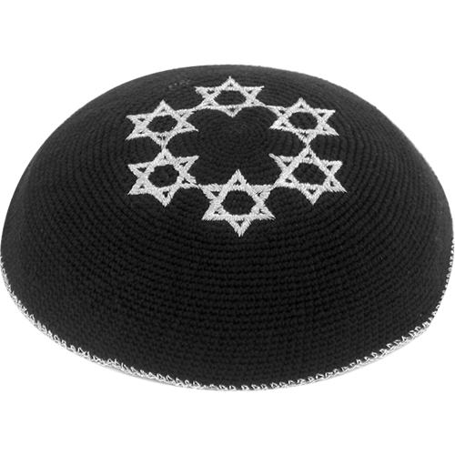 כיפה סרוגה 16 ס"מ 6 מגיני דוד כסף במרכז