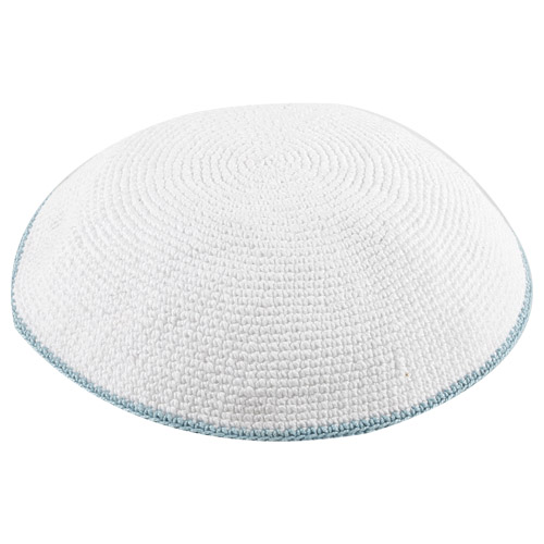 כיפה ד.מ.צ. לבן עם פס תכלת איכותי קשיח 16 ס"מ