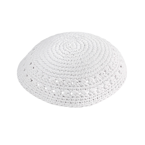 כיפה סרוגה 15 ס"מ לבן מחורר