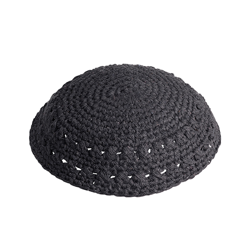 כיפה סרוגה 15 ס"מ שחור מחורר
