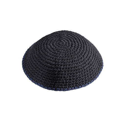 כיפה סרוגה 15 ס"מ שחור מסביב פס כחול