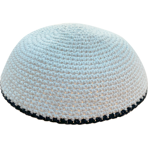 כיפה סרוגה 15 ס"מ לבן מסביב פס שחור