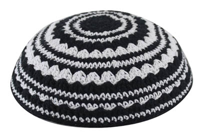 כיפה סרוגה שטיח 20 ס"מ שחור ולבן