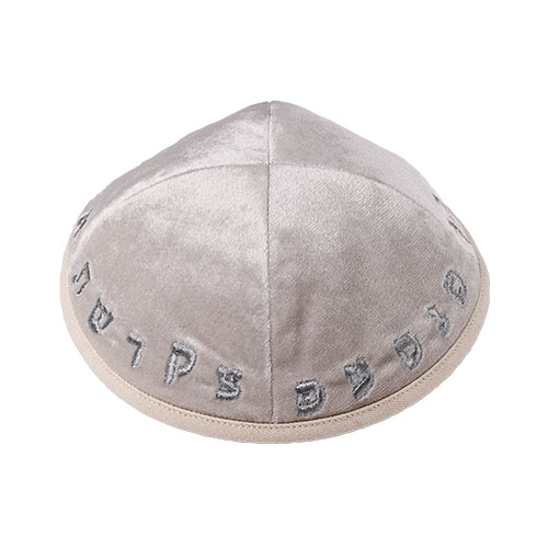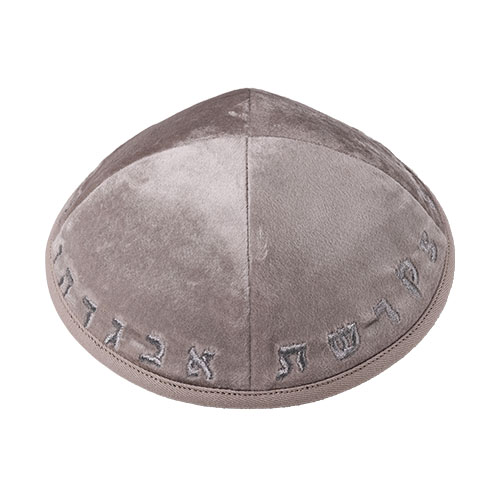 כיפה קטיפה "ארט מן" עם ריקמה אותיות גודל 4 – אפור בהיר