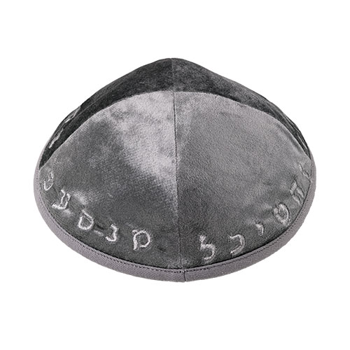 כיפה קטיפה "ארט מן" עם ריקמה אותיות גודל 4 – אפור