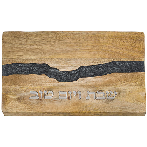 מגש חלה עץ עם אפוקסי אפור 41X28 ס"מ