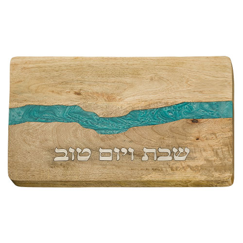 מגש חלה עץ עם אפוקסי כחול 41X28 ס"מ