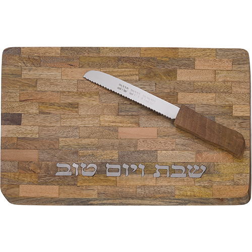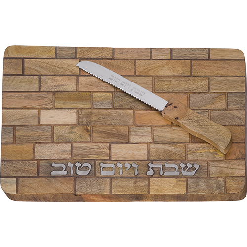 מגש חלה עץ מנגו טבעי + סכין 41X27 ס"מ