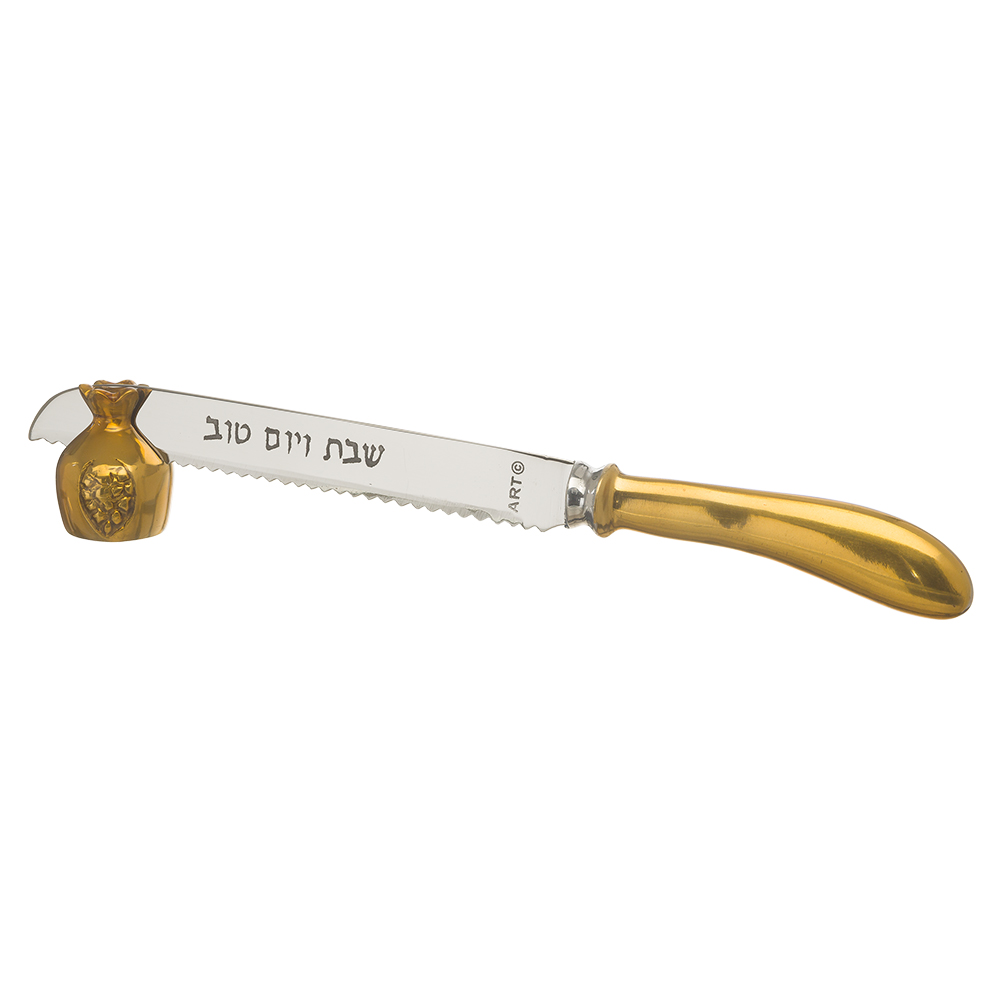 סכין שבת אלומיניום מהודר עם מעמד רימון -זהב 30 ס"מ