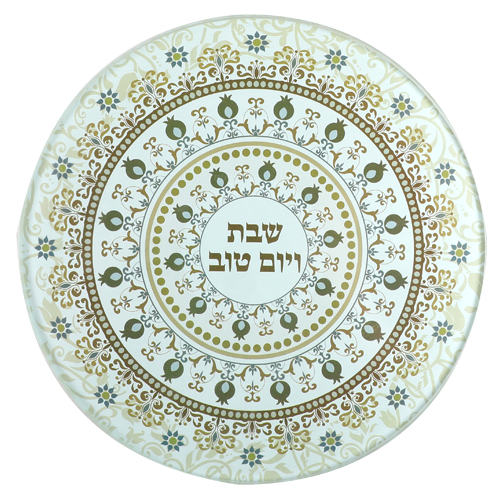 תחתית לסיר זכוכית מהודרת "שבת ויום טוב" 19×19 ס"מ
