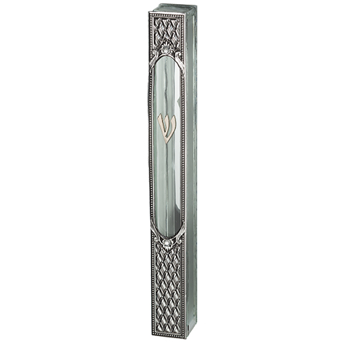 מזוזה זכוכית מהודרת עם פלקטה "איקסים" 20 ס"מ